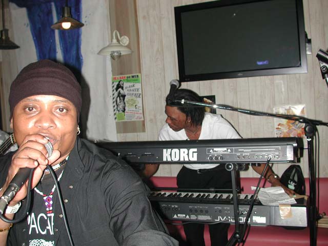 ▲ボーカルのフレッシ(左)と飛び入り参加のウィリー(右)